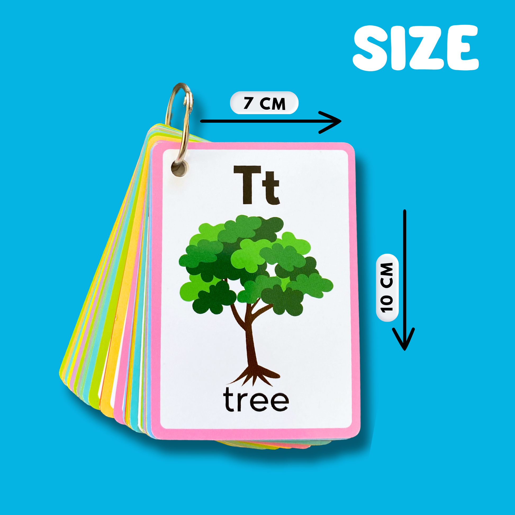 Introduce your little ones to the wonders of the alphabet with these vibrant Alphabet Flash Cards for Toddlers. This educational set of ABC Flash Cards is designed to make learning the letters a fun and engaging activity. Featuring colourful illustrations and clear text, these cards help reinforce letter recognition, letter sounds, and letter-object association. The set includes both uppercase and lowercase letters, allowing your child to grasp the concepts of letter forms and their corresponding sounds. These durable flash cards are perfect for preschool activities, Home-schooling, or simply enjoying quality learning time with your toddler. Encourage early literacy skills and foster a love for learning with these delightful Alphabet Flash Cards for Toddlers.
