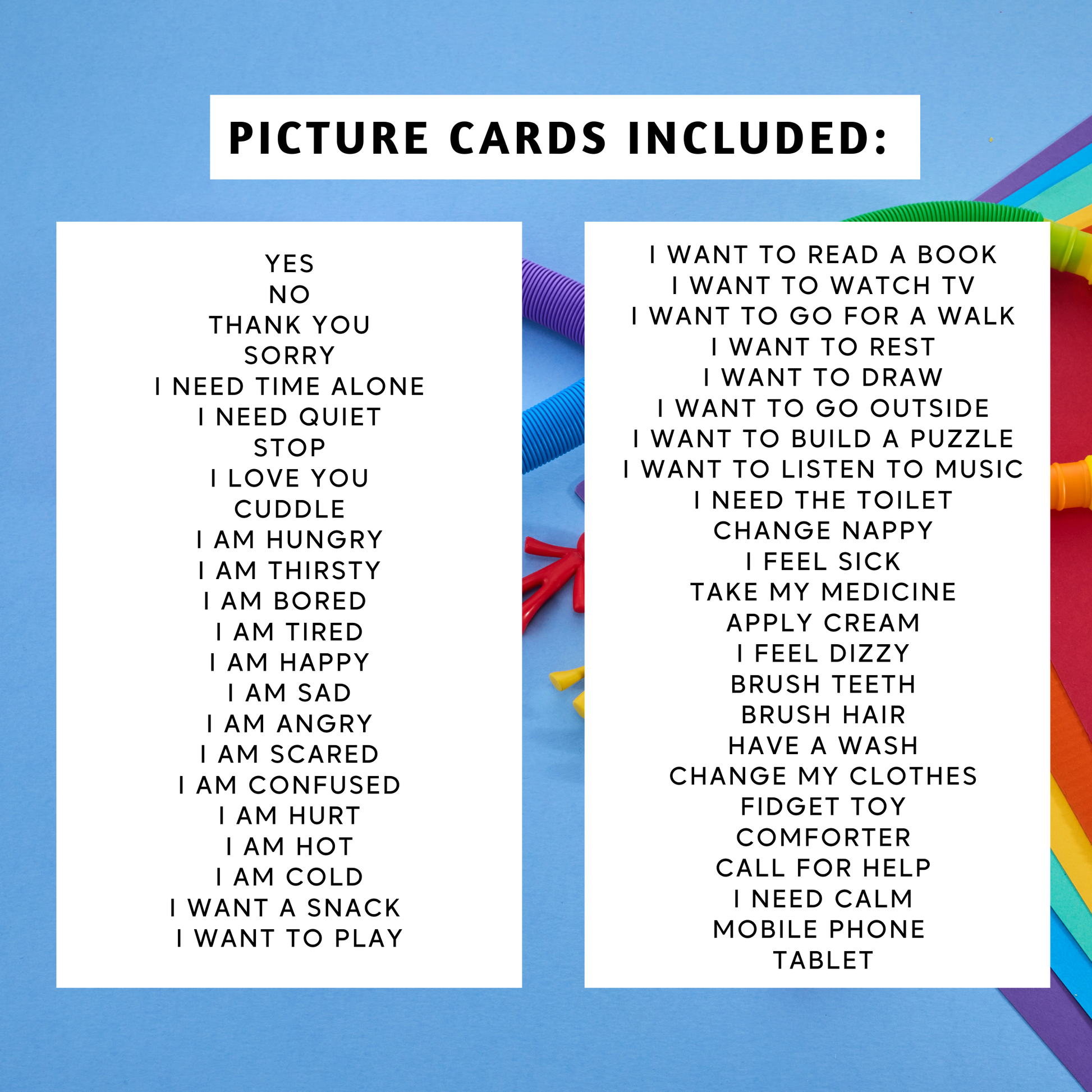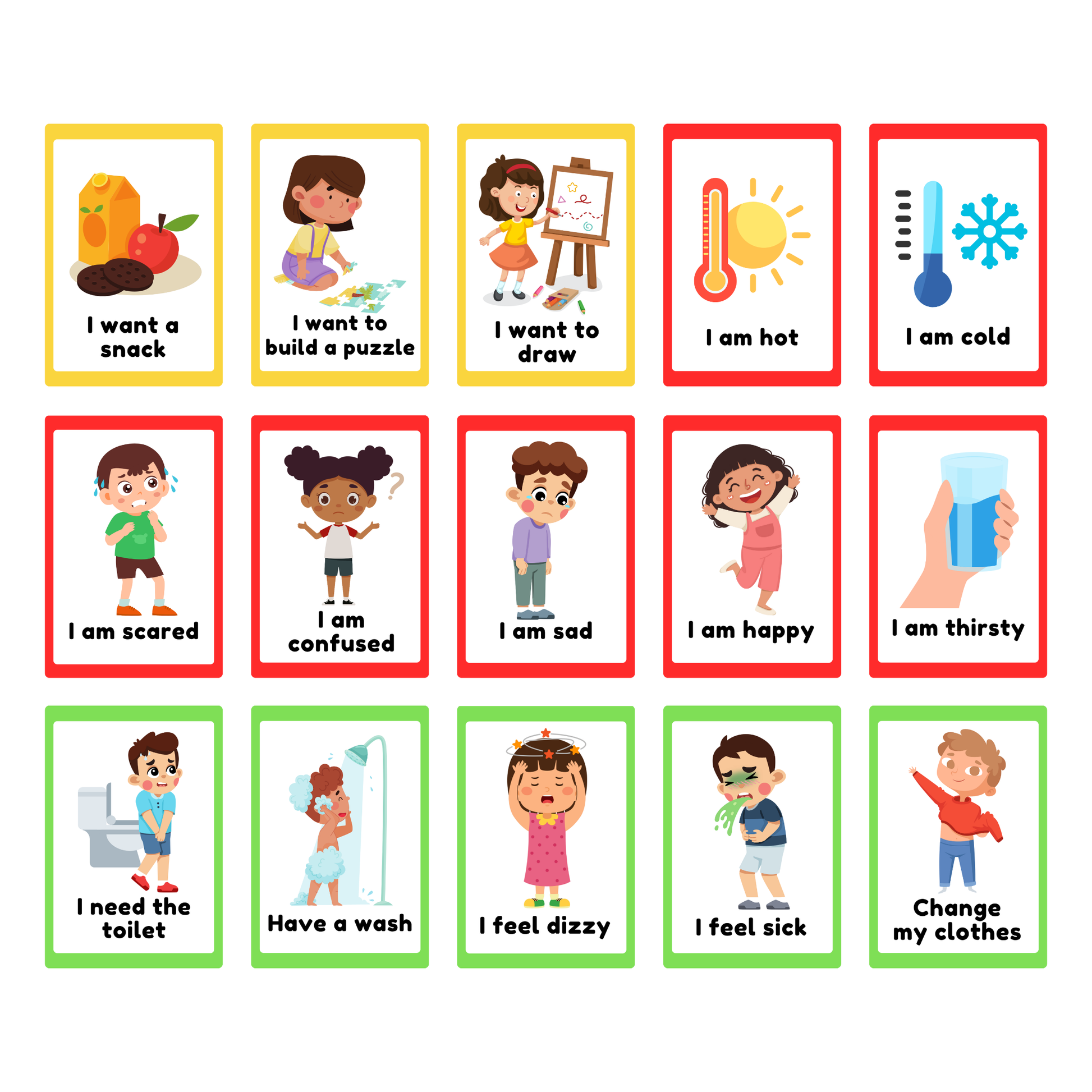 These cards are designed to be portable and user-friendly, making them suitable for use at home, in school, or in other settings. They can help reduce frustration and misunderstandings, promoting better interactions and inclusion.