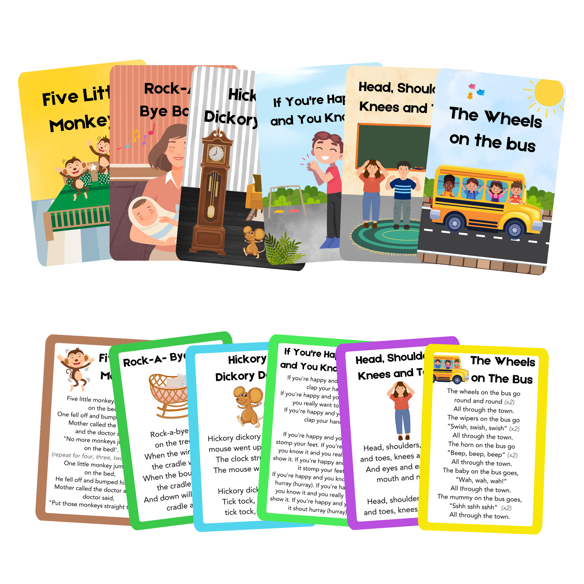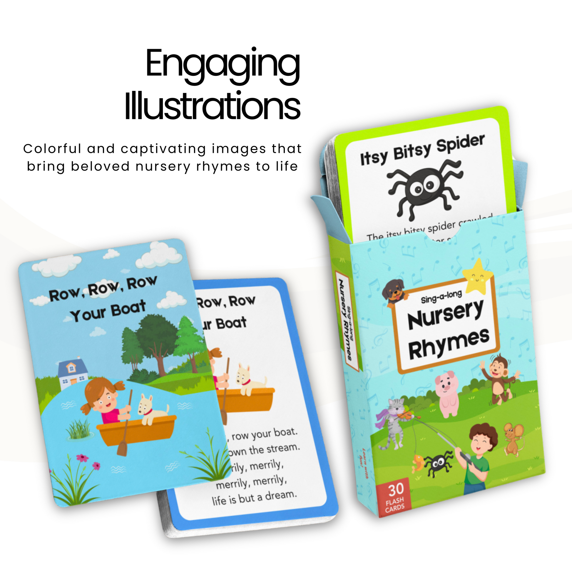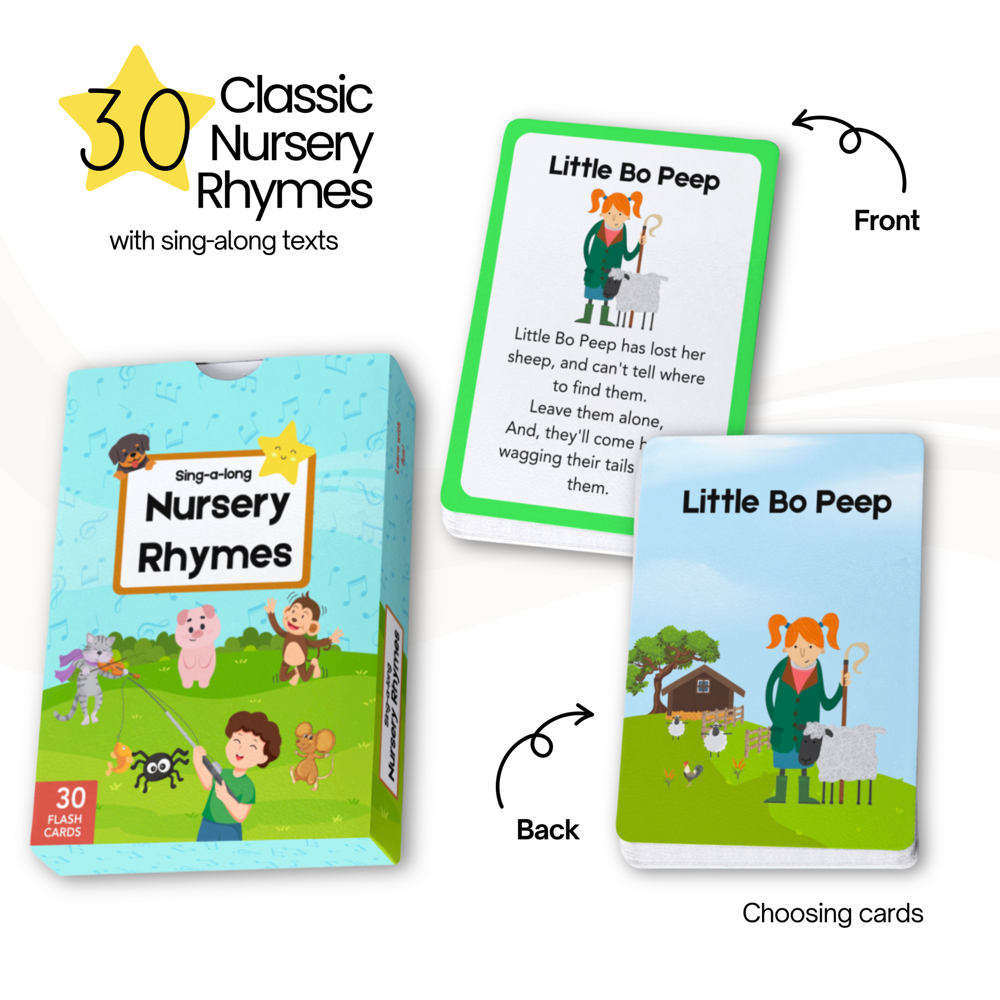 - Beautifully designed cards showcasing 30 beloved nursery rhymes!